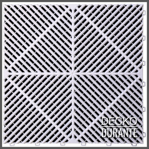 Garázsburkolat FEHÉR - összepattintható polipropilén padló | DECKO DURANTE (400x400x18 mm) - (Egy darab)