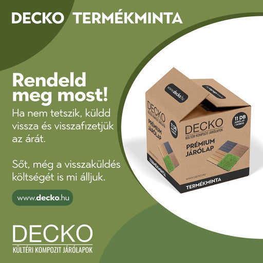 Teraszburkolat Mintadoboz - Prémium WPC összepattintható járólap | DECKO - Visszavásárlási Garanciával - válassz színt! (visszaszállítás a mi költségünk) - 11 Járólap = 1 nm (1 doboz/cím)