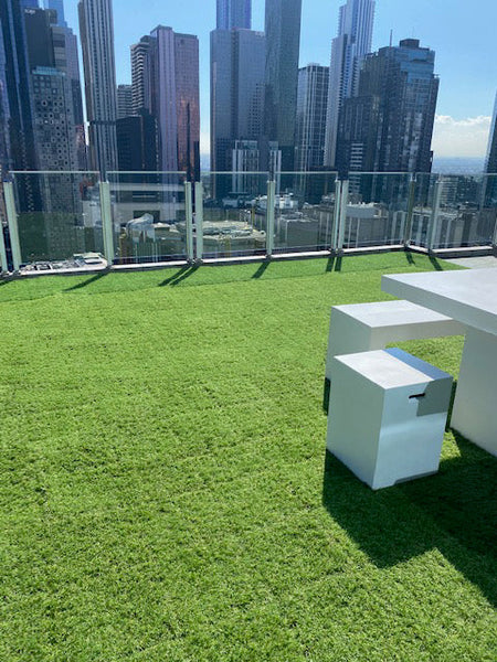 Grass tiles being laid on a Highrise in Melbourne CBD