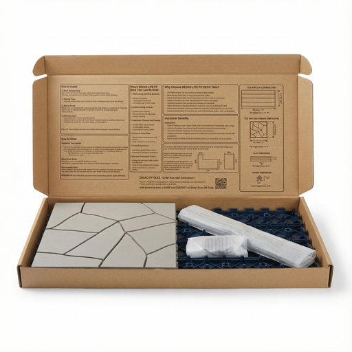 A DECKO Lite Járólapok egy költséghatékonyabb alternatívát kínálnak a prémium kompozit fa járólapokhoz, ugyanazokkal a kulcsfontosságú előnyökkel! Rendkívül tartósak és karbantartásmentesek,könnyen telepíthetők és vízállóak, újrahasznosított polipropilénnel készülnek, lenyűgöző kőhatású esztétikával, szemben a hagyományos 4 lécből álló "deck" megjelenésű lapokkal
